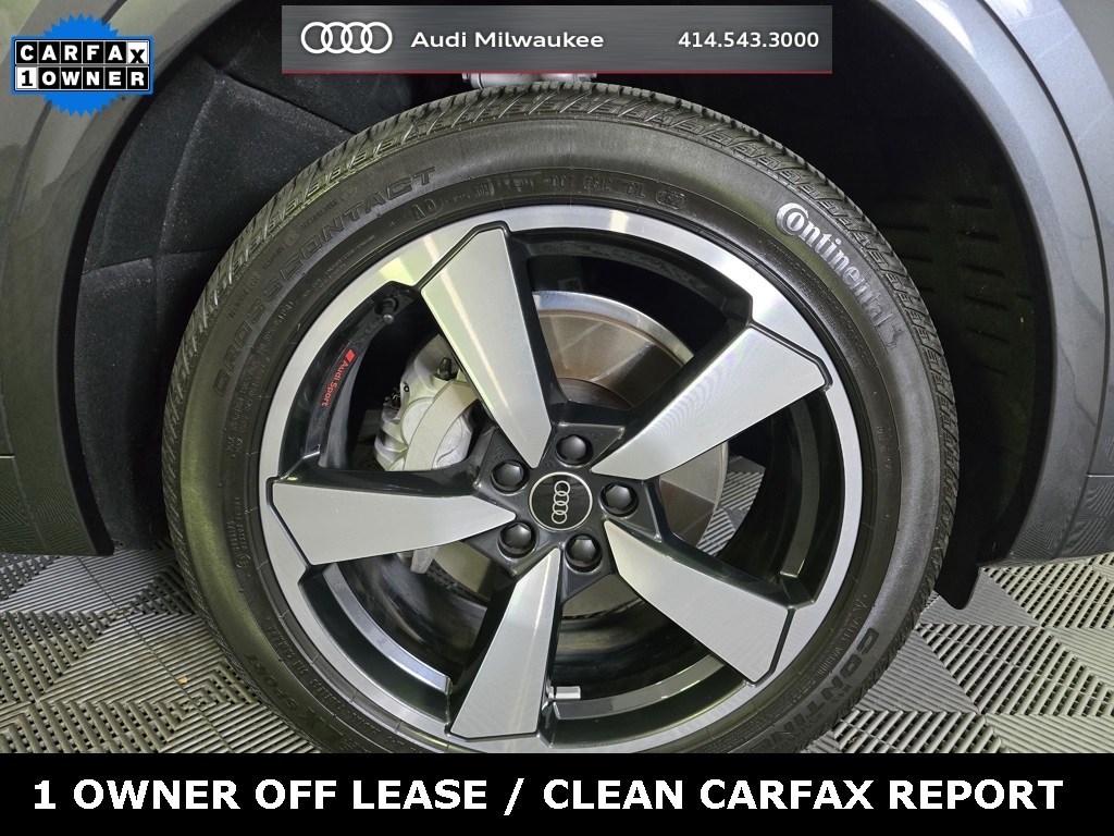 CARFAX One-Owner. Clean CARFAX. Daytona Gray Pearl Effect 2023 Audi Q5 45 S line Premium Plus quattro quattro 7-Speed Automatic S tronic 2.0L Turbocharged Black w/Leather Seating Surfaces, ABS brakes, Alloy wheels, Audi Active Lane Assist, Audi Advanced Key, Audi Connect PLUS, Audi Virtual Cockpit Plus, Bang & Olufsen Sound System w/3D Sound, Black Exterior Trim, Black Optic Package, Black Roof Rails, Compass, Convenience Package, Delay-off headlights, Driver door bin, Driver Seat Memory, Electronic Stability Control, Exterior Parking Camera Rear, Front dual zone A/C, Hands-On Detection Steering Wheel, Heated 8-Way Power Front Bucket Seats, Heated door mirrors, Heated front seats, Heated Steering Wheel, Illuminated entry, Leather Seating Surfaces, Leatherette Covered Center Console & Door Armrests, Low tire pressure warning, Manual Rear Side Window Sunshades, MMI Navigation Plus, Navigation Package, Navigation System, Panoramic Sunroof, Power Adjustable Steering Column, Power Liftgate, Premium Plus Package, Rain sensing wipers, Remote keyless entry, Security system, Top View Camera System, Traction control, Traffic Jam Assist, Ventilated Front Sport Seats w/4-Way Power Lumbar, Warm Weather Package, Wheels: 20" 5-Arm Cutter Design, Bi-Color Finish.